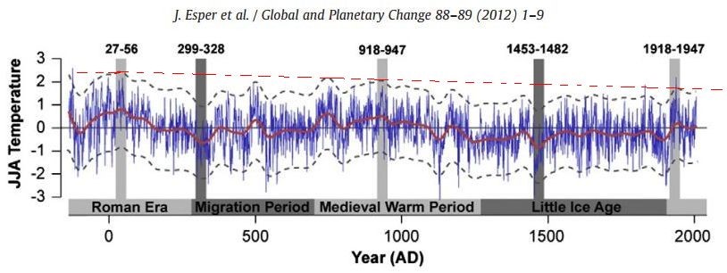 World Warming Period of 1000 AD from Wiki and J. Esper et al