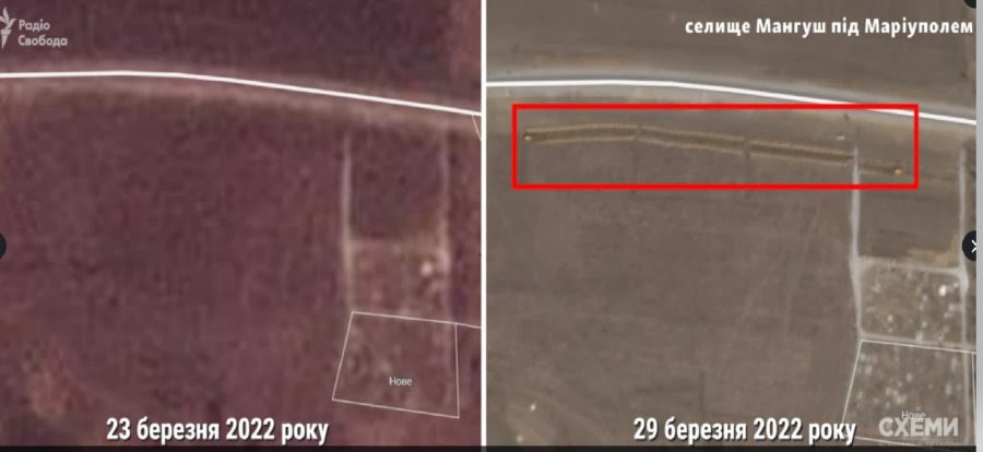 The Kharkiv Human Rights Protection Group (KHPG) reported, “Satellite images, released by Maxar Technologies on 21 April, have identified what appears to be a mass grave, containing about 200 graves. The site began expanding between 19 and 23 March, and had become significantly larger by 30 March. The area of new graves, which is near the existing cemetery at Manhush, a town less than 20 kilometres from Mariupol, is reportedly at least 300 metres in length.