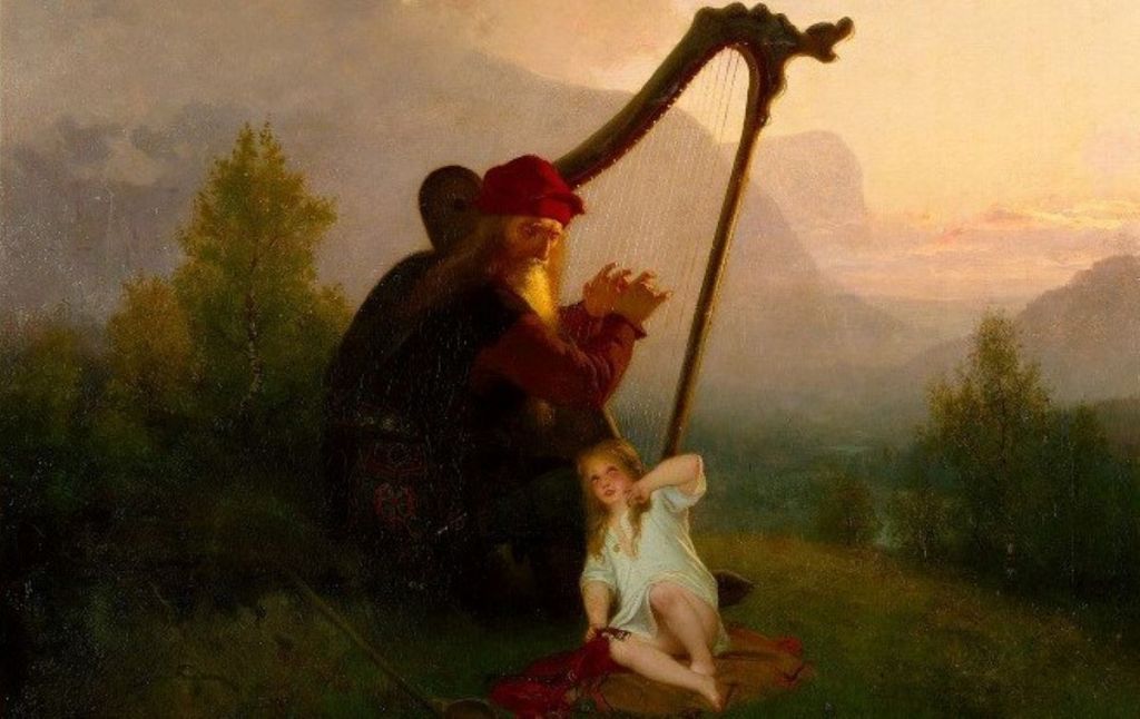 “At the court of King Sigurd there lived an exiled king called Heimer who was the chief skald and musician of the Volsungs, and had personally witnessed the great love of King Sigurd and Princess Brynhild for their daughter, Princess Aslaug, and when they’d both died together that one night and Prince Atli, the Hun half-brother of Brynhild showed up, likely to take the young surviving princess off to the land of the Huns in Khazaria, he took the small child and hid her in the casement of a large harp he owned and he smuggled her out of the country. The kingly old bard joined a group of refugees leaving Volsunga for Kiev and the old witch saw him and introduced him to a nursemaid who was taking a baby girl to King Olmar of the Poljane Slavs of Kiev and she asked the old bard to look after her along their way together. Jarl Heimer told the old witch that he would do his best and he escorted the nursemaid and baby along the first leg of Princess Aslaug’s escape route.”