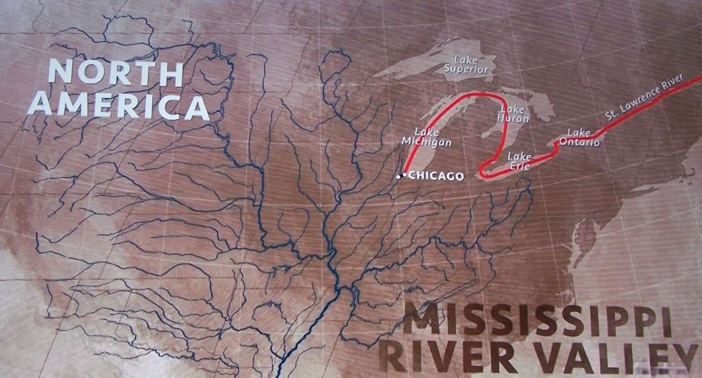 Meanwhile, the Draken made its way through the Seaway locks and past Lake Ontario before being stopped by the Niagara falls before Lake Erie.  The narrator explains that the natives in ancient times had carved an 11 Kilometer portage route around the falls (or perhaps King Frodi built the road as detailed in Book 3 of my The Varangians Saga Series), but Draken took the Welland Canal locks up and around the falls.  In Fairport Harbor Ohio, the crew of the Draken are confronted by American bureaucracy.  They are required to have an American pilot on board their ship at all times at a cost of $9,000 USD per day.  They carry on to Bay City Michigan on Lake Huron and are caught up in a very dangerous electrical storm on the way, but the people of Michigan welcome them very warmly on their successful arrival.  Soon they are off to Chicago on Lake Michigan.  From there the Vikings could have gone anywhere!  The 10 kilometer Chicago portage would have allowed them access to the Mississippi River and the Valley of the Mound Builders and from there to the Gulf of Mexico and the Mayans of Central America (and their Gold as detailed in my The Varangians Saga Series).