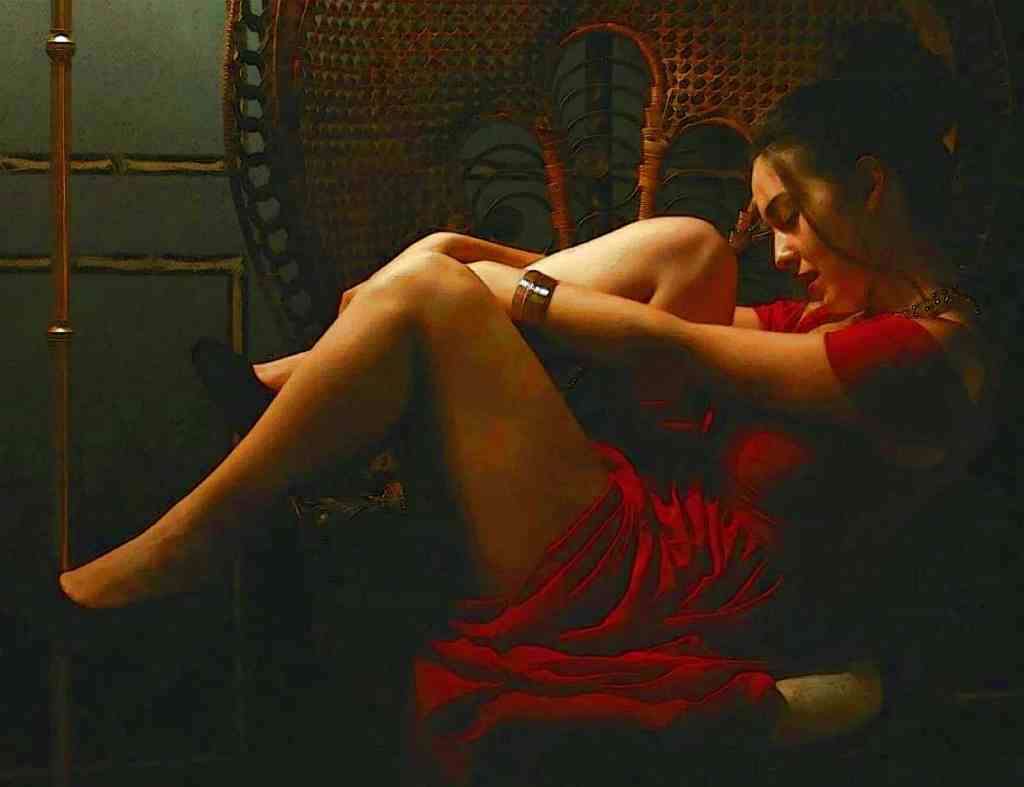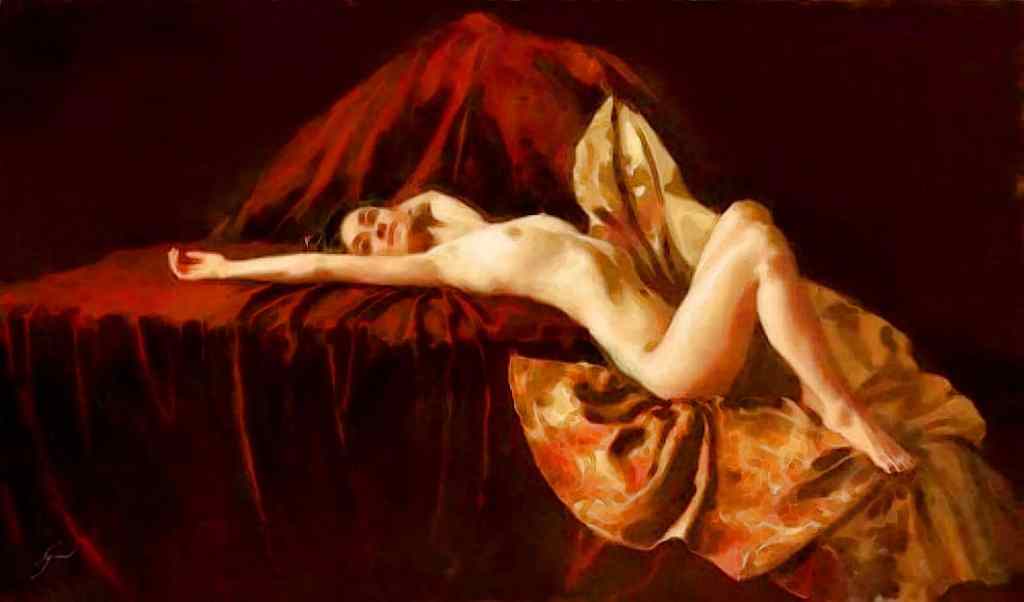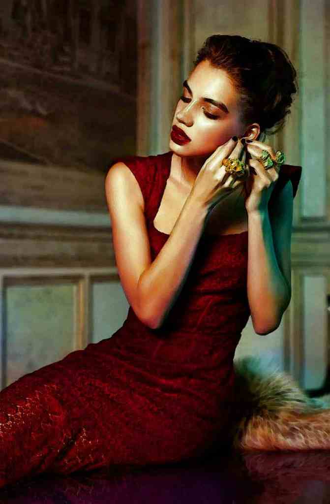 Red House Princess Poses for Pastel Oil Sketch