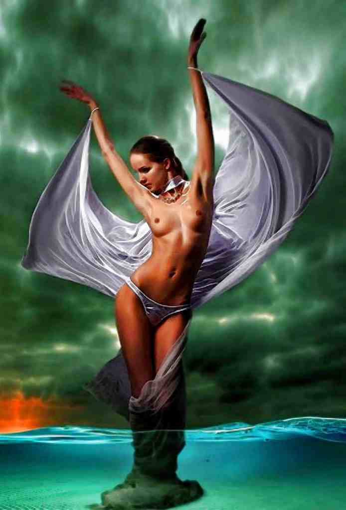 And She is Soon Floating Above the Pool of Water