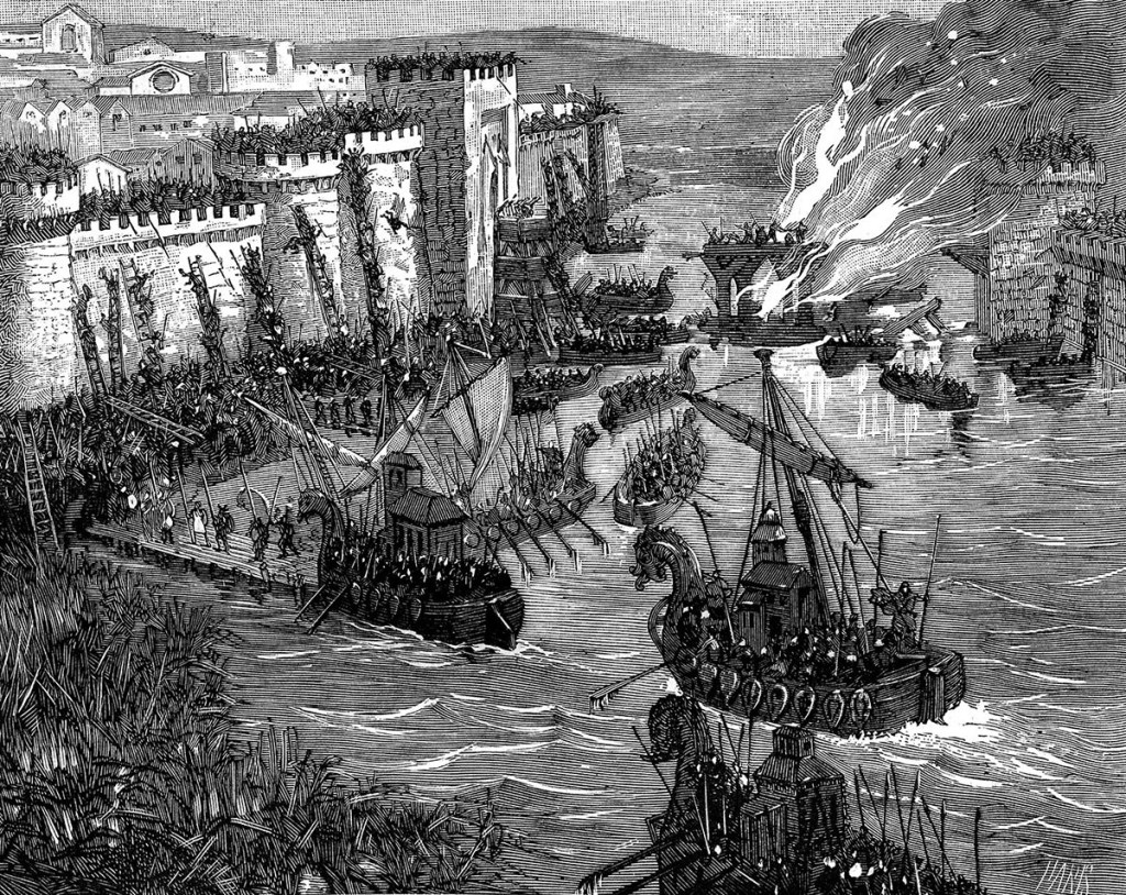 The Normans, as the followers of Duke Rollo were called, withdrew to Paris with a fleet of one hundred ships full of the citizens of Rouen and sought the protection of the Franks, who were suspicious and thought the Normans were attacking them, so they barred the gates to the city. Fortunately, Duke Rollo knew their defences and had his men drag their ships around one of the low bridges blocking the river that flowed around the island city. Count Oddo of Paris only had two hundred troops with which to defend the city, so he could not pursue them, but he immediately started building twin wooden towers at the far ends of each bridge so they would not be able to portage around so easily on the way back. He did not know, at that point, that the Normans were being pursued by King Frodi and the Hraes’, but, at least, now he would not be surprised by the Danes. The Normans had tried to offer aid, but the Franks were too suspicious, so they warned them of the coming fleet and carried on upstream with their refugees. Some of their larger ships could not be portaged, so they left them anchored on the Seine, leading King Frodi, on his arrival, to believe the Normans were taking shelter in the city. He laid siege to Paris. But the Franks had built high walls and ramparts around Paris after Hraegunar Lothbrok‘s sacking of the city decades earlier and now Paris could not be stormed. King Frodi lost many men trying to scale the city’s grey stone walls, and it did not seem to matter how many Franks he killed in attacks, they were always replaced by fresher tougher fighters. It was a mystery to the Danes, but it was not surprising that Count Oddo, on losing half his men, suddenly became more accepting of Norman aid. The siege was meant to keep the Parisians within, so it was quite easy, under cover of darkness, to sneak in Normans from without. Once the Normans had settled their refugees in several cities upstream of Paris, they returned and Duke Rollo and Arrow Odd wintered in Paris defending its walls while King Frodi and Prince Alf spent the winter in tents, outside the walls, trying to get in. It was during the defence of Paris that Count Oddo made Hraelauger Duke of Normandy and Count of Rouen. Duke Rollo jested that, had he known he would end up being the Count of Rouen, he would never have allowed King Frodi to sack the city.